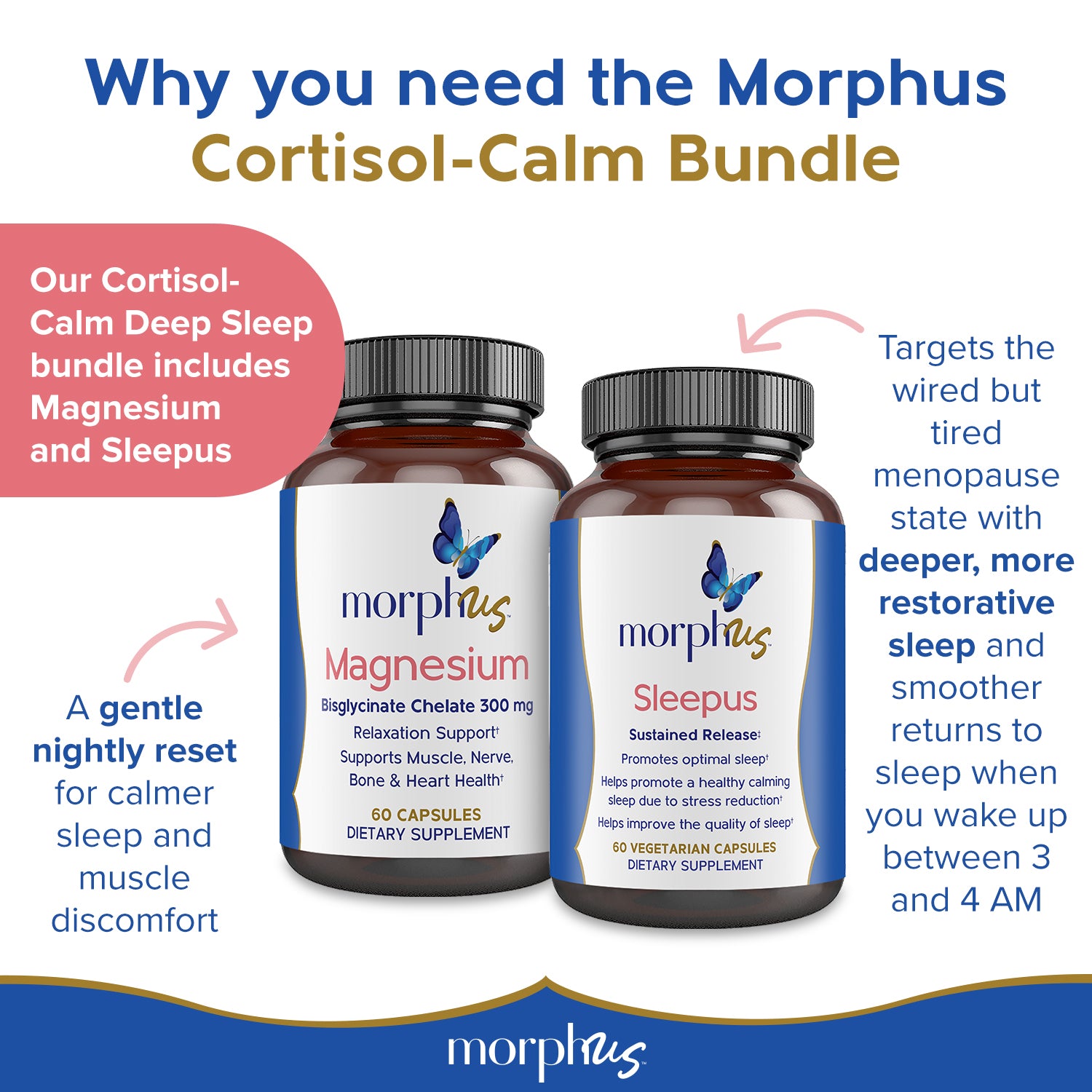 Menopause insomnia? Stressed? Enter the Cortisol-Calm Deep Sleep Bundle. Featuring magnesium for relaxation, L-theanine to quiet your mind, Lactium for stress management, and melatonin to promote restful sleep, our bundle helps you achieve uninterrupted, restorative sleep.
